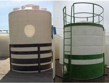 6、儲罐內存溶液溫度一般為常溫。若盛裝液體溫度高于50℃時,應配置金屬補強套,以防防腐儲罐軟化變形,補強套松緊以不掉落為宜。